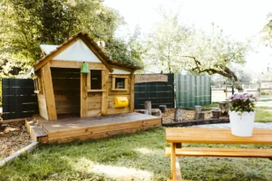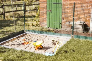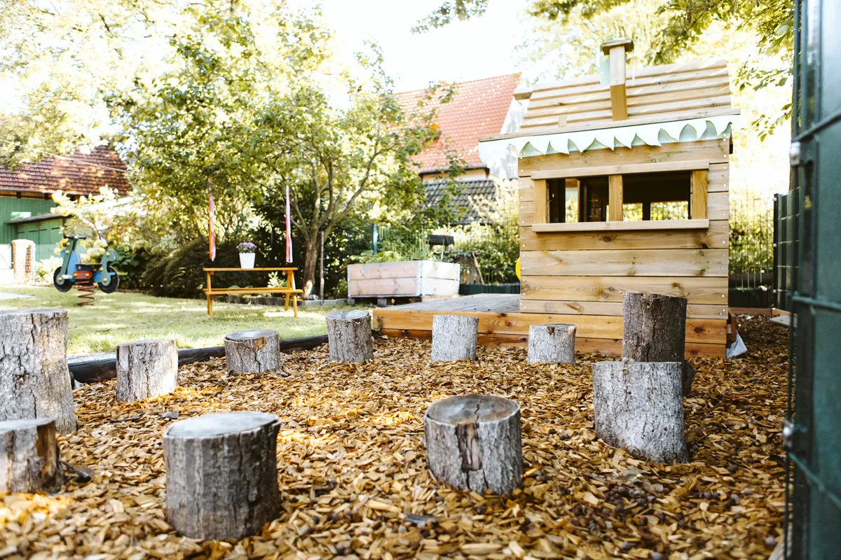 Unser Garten mit großem Spielbereich lädt täglich zum Entdecken und Toben an der frischen Luft ein.