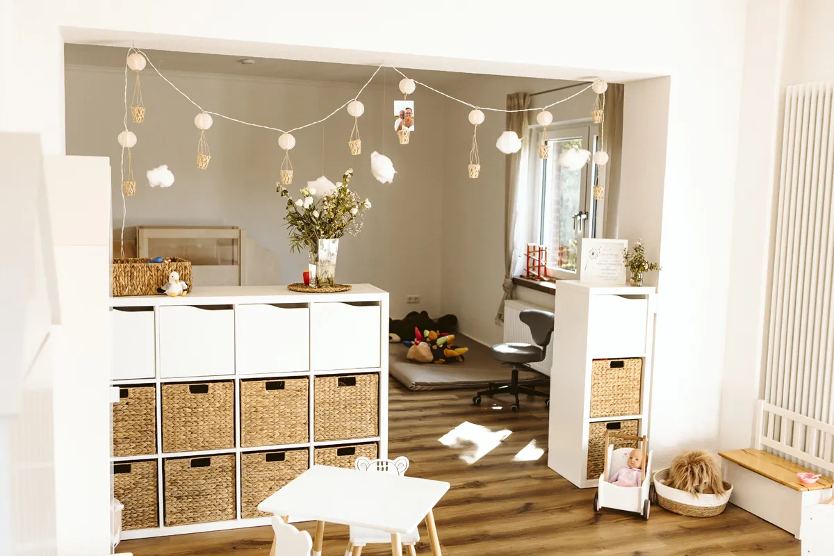 Ein Blick in unsere Räume: Hier spielen, essen und ruhen die Kinder in einer warmen, freundlichen Umgebung.